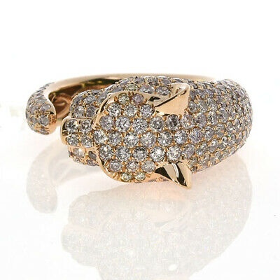 18KT ROSE GOLD FUN RING. 3D HAPPY PANTHER JAGUAR DESIGN. LIGHT PINK DIAMONDS ARE 2.59 CARATS. AAA EMERALDS ARE .06 CARATS. RING SIZE 7. CAN BE SIZED BY OUR MASTER JEWELER UPON REQUEST. WRITTEN APPRAISAL AVAILABLE. COMES IN A PRESENTABLE GIFT BOX.