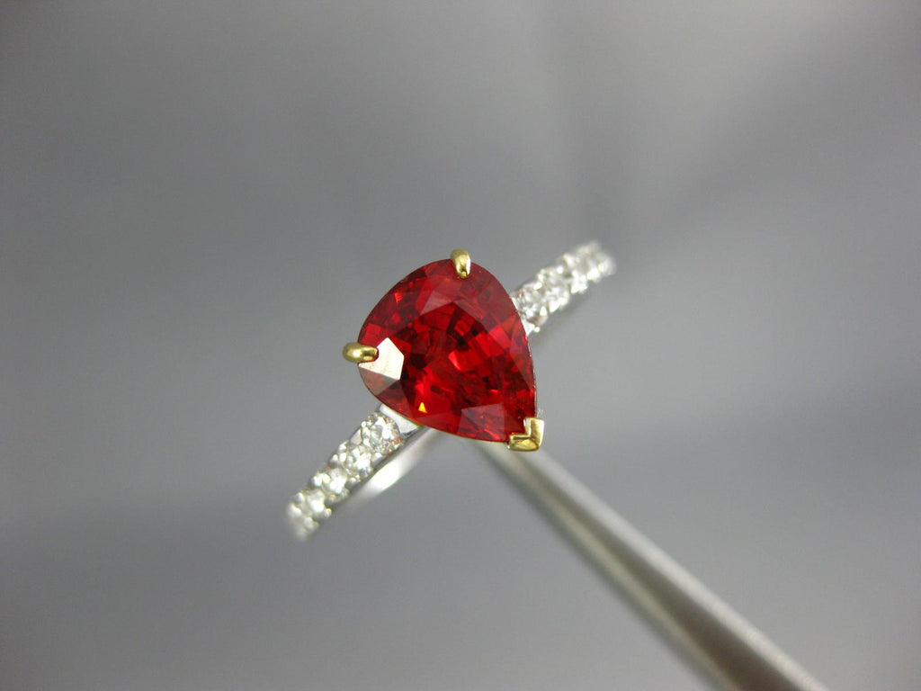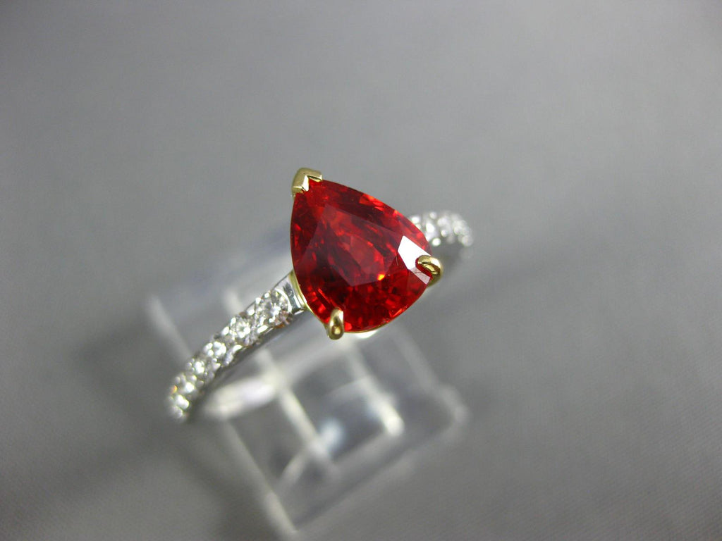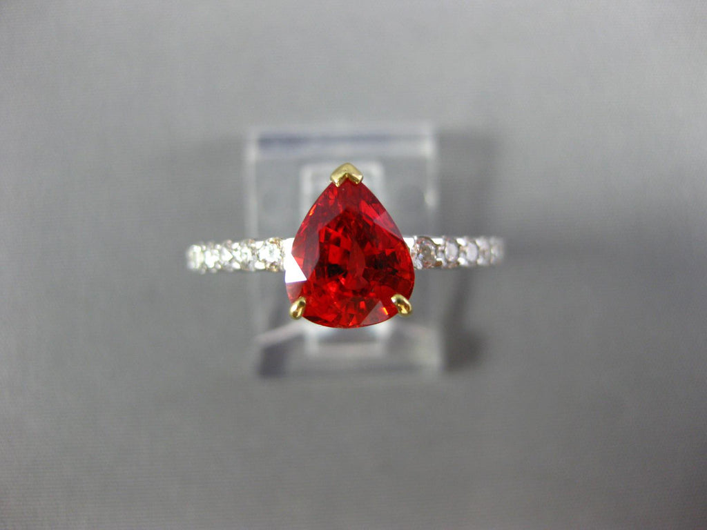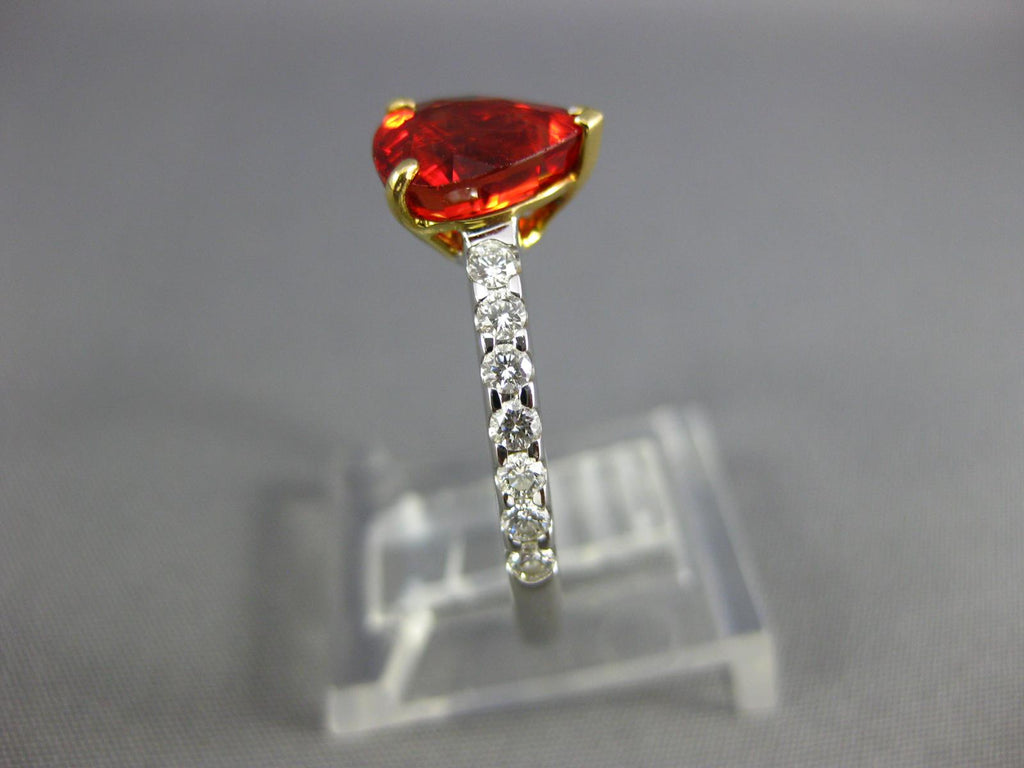 2.66CT DIAMOND & AAA ORANGE SAPPHIRE 18KT 2 TONE GOLD PEAR SHAPE ENGAGEMENT RING