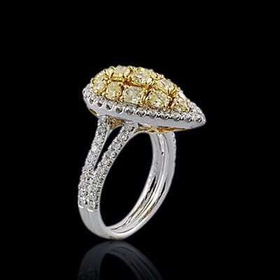 2.73CT WHITE & FANCY YELLOW DIAMOND 18KT 2 TONE GOLD 3D PEAR SHAPE CLUSTER RING