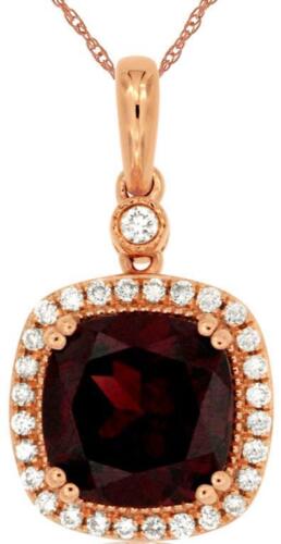 14KT ROSE GOLD FUN FLOATING PENDANT. 3D SQUARE HALO SOLITAIRE DESIGN. ROUND DIAMONDS ARE F/G COLOR, VSSI CLARITY .18 CARATS. AAA EXTRA FACETED CUSHION CUT RHODOLITE IS 2.60 CARATS. COMES ON A 14KT GOLD DIAMOND CUT 16" INCH CHAIN. WRITTEN APPRAISAL AVAILABLE. COMES IN A PRESENTABLE GIFT BOX.