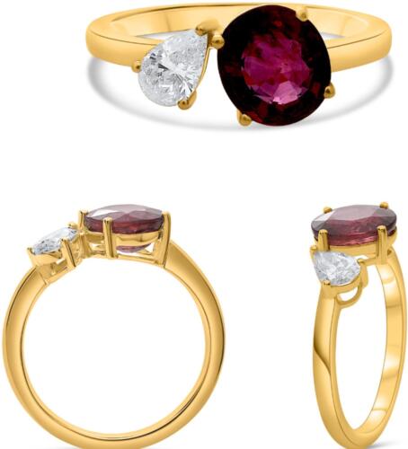 2.79CT DIAMOND & AAA RUBY 18KT YELLOW GOLD OVAL & PEAR SHAPE 2 STONE LOVE RING