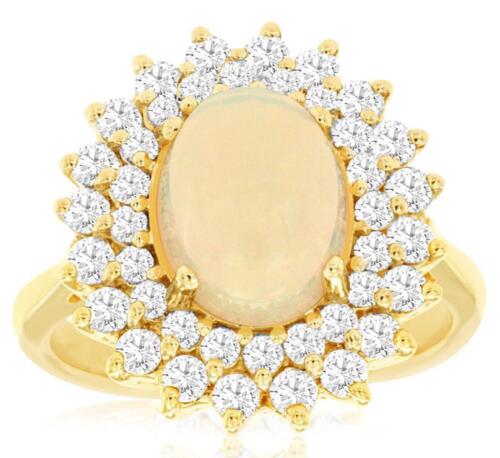 2.7CT DIAMOND & AAA OPAL 14KT YELLOW GOLD OVLA & ROUND DOUBLE HALO FLOWER RING