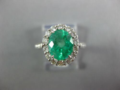 2.80CT DIAMOND & AAA EMERALD 18K WHITE GOLD 3D OVAL HALO CLASSIC ENGAGEMENT RING