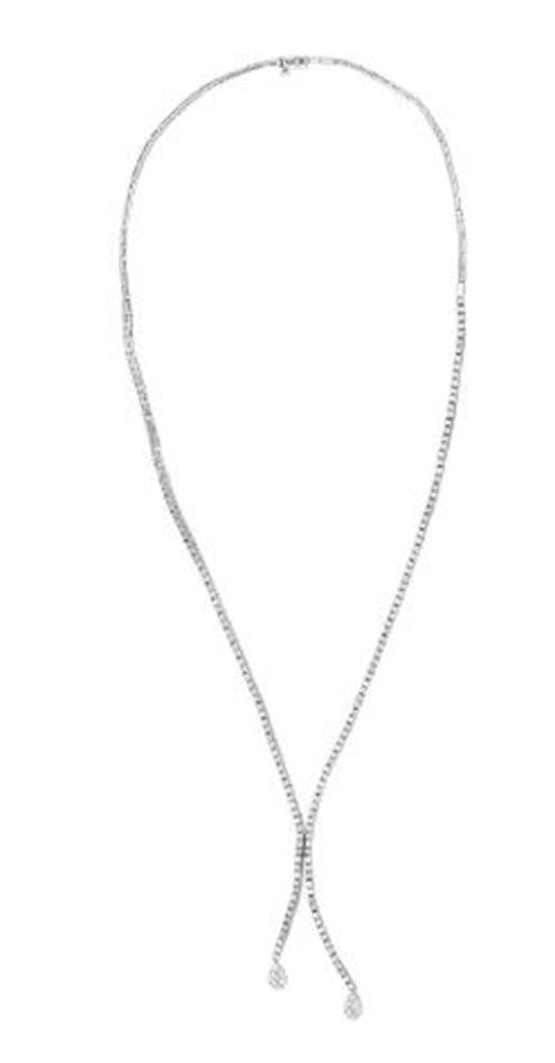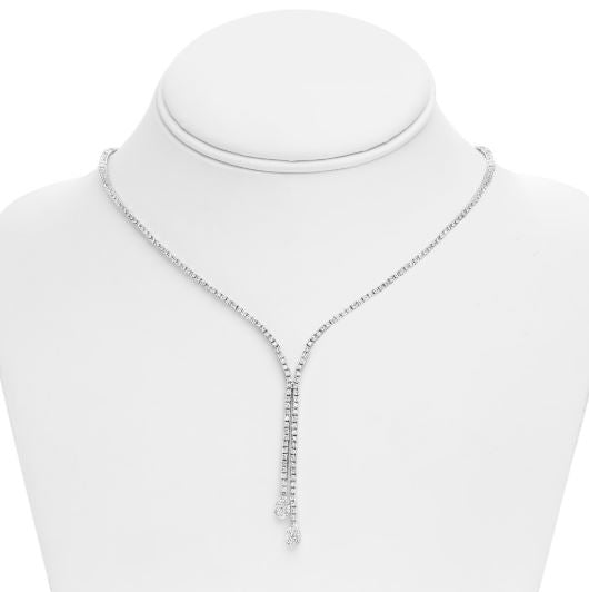 14KT WHITE GOLD LOVE NECKLACE. 3D CLASSIC ETERNITY DOUBLE TEAR DROP LARIAT  DESIGN. ROUND DIAMONDS ARE F/G COLOR, VSSI CLARITY 2.81 CARATS. MEASURES 47mm X 5mm WIDE. 17" INCHES LONG. WRITTEN APPRAISAL AVAILABLE. COMES IN A PRESENTABLE GIFT BOX.