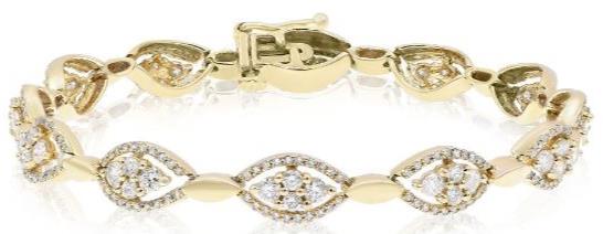 14KT YELLOW GOLD FUN TENNIS BRACELET. 3D CLUSTER MARQUISE SHAPE DESIGN. DIAMONDS ARE F/G COLOR, VSSI CLARITY 2.85 CARATS. 7" INCHES LONG. WRITTEN APPRAISAL AVAILABLE. COMES IN A PRESENTABLE GIFT BOX.