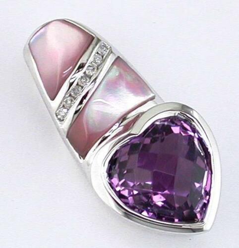 2.85CT DIAMOND & AAA AMETHYST MOTHER OF PEARL 14K WHITE GOLD HEART SHAPE PENDANT