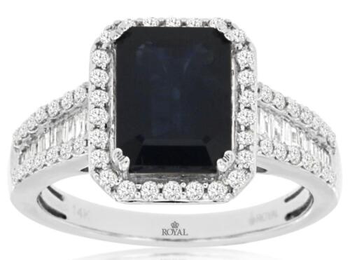 2.85CT DIAMOND & AAA SAPPHIRE 14K WHITE GOLD EMERALD CUT & ROUND ENGAGEMENT RING