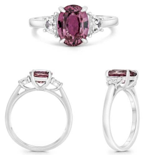 2.86CT DIAMOND & AAA PINK SAPPHIRE PLATINUM 3D OVAL & HALF MOON 3 STONE RING
