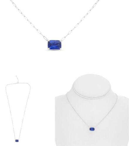 2.93CT AAA SAPPHIRE 14KT WHITE GOLD CUSHION SOLITAIRE SQUARE ADJUSTABLE NECKLACE