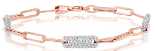 2.93CT DIAMOND 14KT WHITE & ROSE GOLD 3D ROUND RECTANGULAR BY THE YARD BRACELET