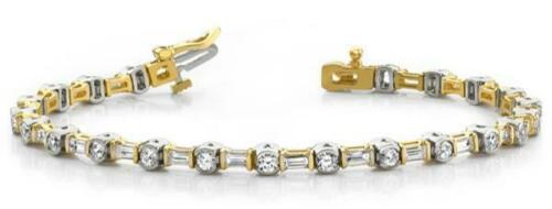 2.95CT DIAMOND 14KT 2 TONE GOLD 3D CLASSIC ROUND & BAGUETTE LOVE TENNIS BRACELET
