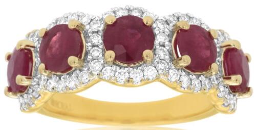 2.95CT DIAMOND & AAA RUBY 14K YELLOW GOLD 3D ROUND 5 STONE HALO ANNIVERSARY RING