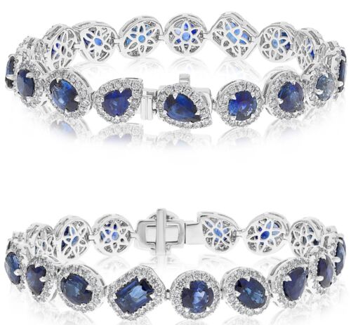 20.13CT DIAMOND & AAA SAPPHIRE 18KT WHITE GOLD MULTI SHAPE LOVE TENNIS BRACELET