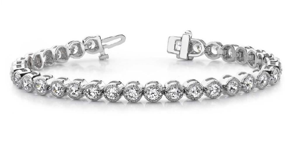 2.01CT DIAMOND 14KT WHITE GOLD ROUND FILIGREE MILGRAIN ETERNITY TENNIS BRACELET