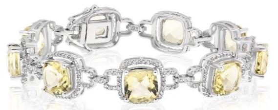 14KT WHITEGOLD FUN TENNIS BRACELET. 3D HALODESIGN. ROUNDDIAMONDS ARE F/G COLOR, VSSI CLARITY 1.78CARATS. AAA PRINCESS CUT LEMON QUARTZ'SARE 19.72 CARATS.7" INCHES LONG. WRITTEN APPRAISAL AVAILABLE. COMES IN A PRESENTABLE GIFT BOX.