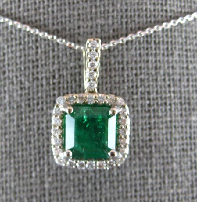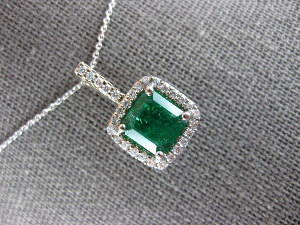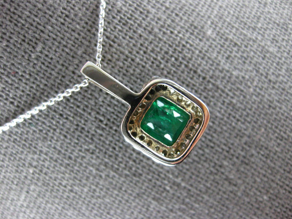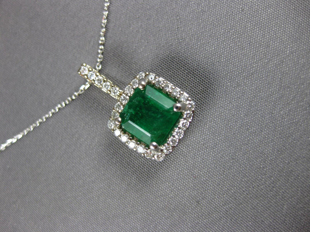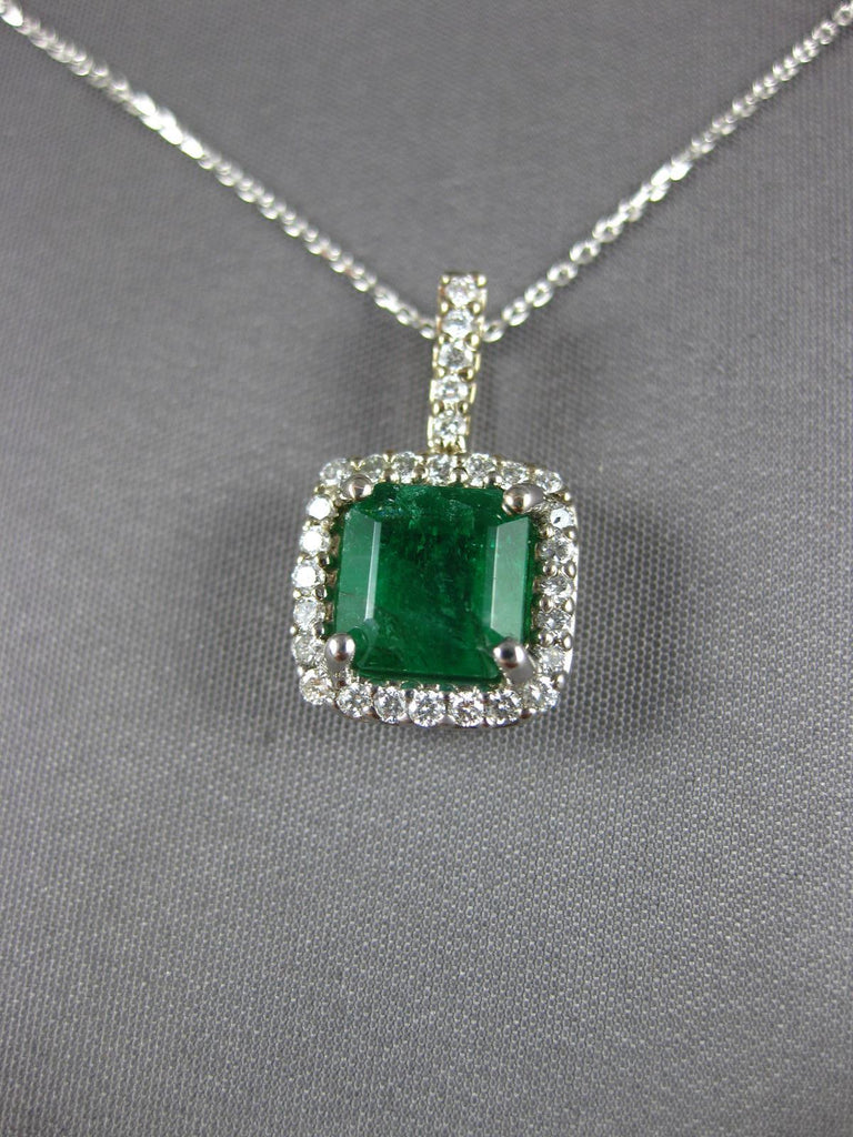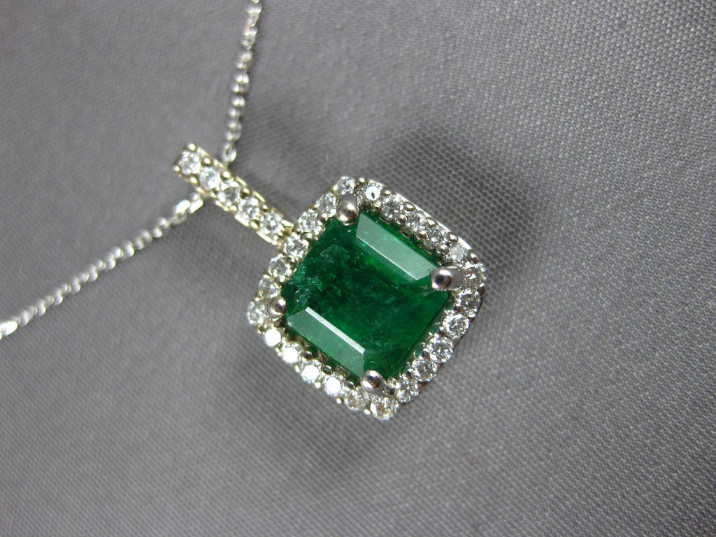 2.24CT DIAMOND & AAA EMERALD 14K WHITE GOLD SQUARE & ROUND HALO FLOATING PENDANT