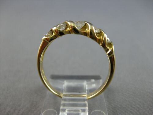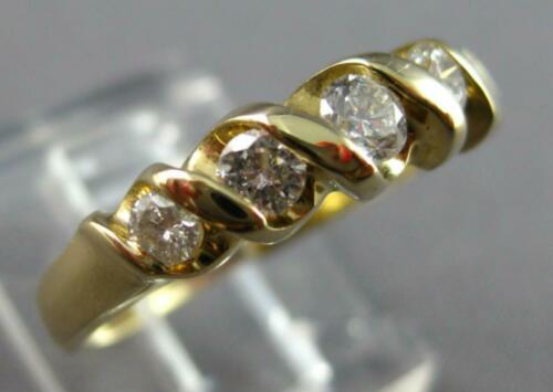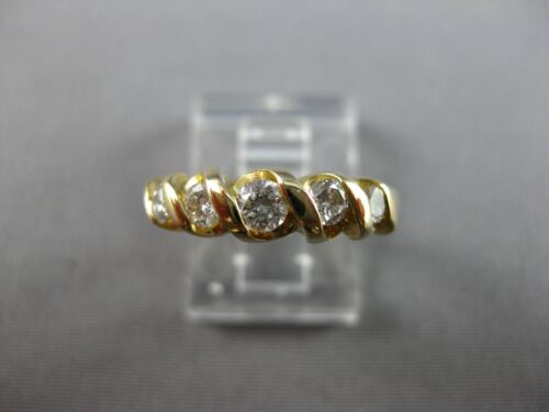 14KT YELLOW GOLD ANNIVERSARY RING. 3D FIVE STONE DIAGONAL CHANNEL DESIGN. ROUND DIAMONDS ARE F/G COLOR, VSSI CLARITY .22 CARATS. MEASURES 4.7mm WIDE. RING SIZE 6.5 . CAN BE SIZED BY OUR MASTER JEWELER UPON REQUEST. WRITTEN APPRAISAL AVAILABLE. COMES IN A PRESENTABLE GIFT BOX.