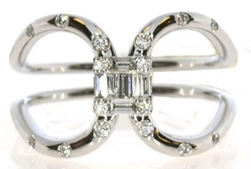 .23CT DIAMOND 18KT WHITE GOLD ROUND & BAGUETTE CLUSTER ETOILE LOVE KNOT FUN RING