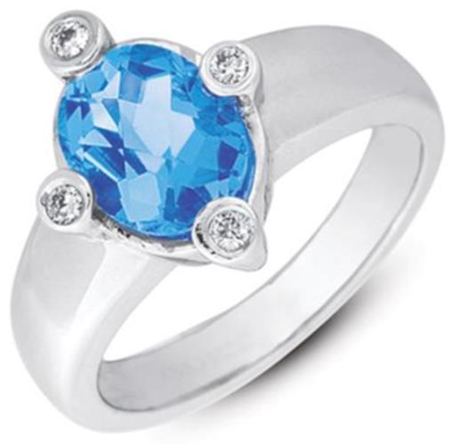 14KT WHITE GOLD FUN RING. 3D ETOILE DESIGN. ROUND DIAMONDS ARE F/G COLOR, VSSI CLARITY .09 CARATS. AAA EXTRA FACETED OVAL BLUE TOPAZ IS 2.32 CARATS. MEASURES 14mm WIDE. RING SIZE 7. CAN BE SIZED BY OUR MASTER JEWELER UPON REQUEST. WRITTEN APPRAISAL AVAILABLE. COMES IN A PRESENTABLE GIFT BOX.
