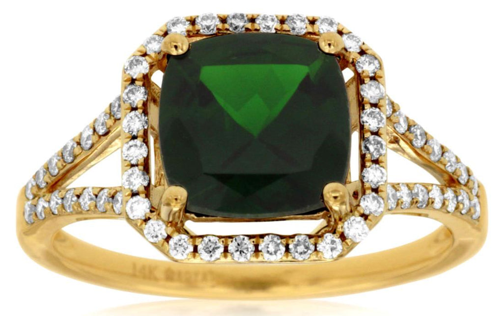 2.45CT DIAMOND & AAA GREEN GARNET 14KT YELLOW GOLD CUSHION HALO OCTAGON FUN RING