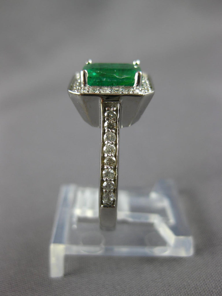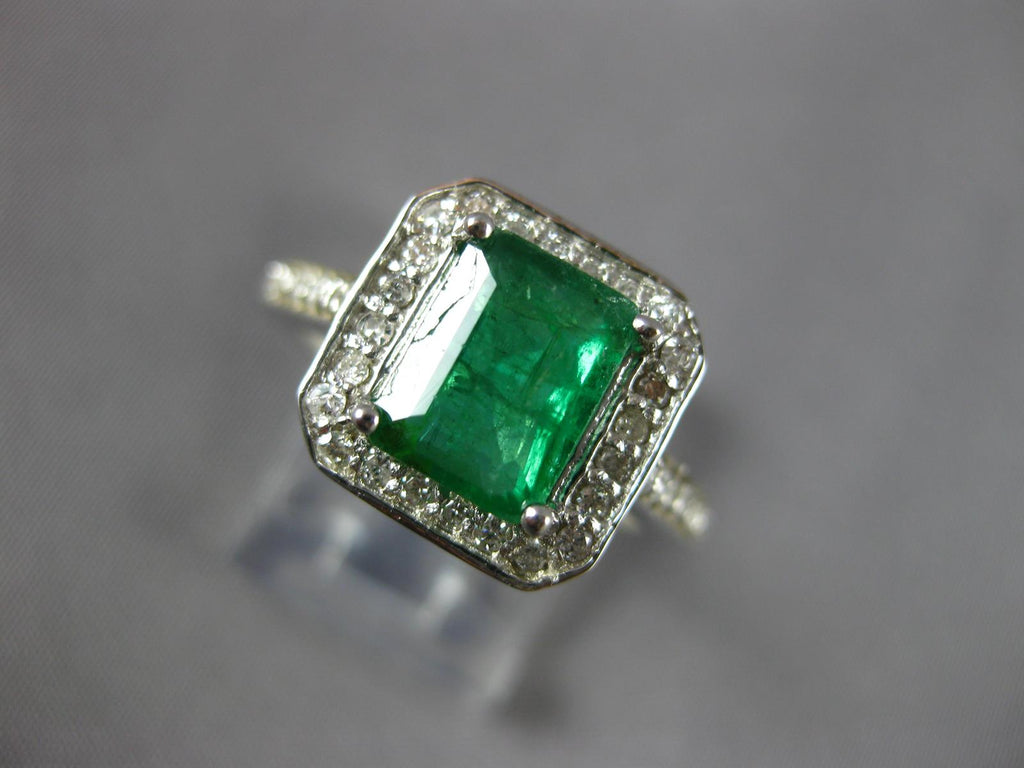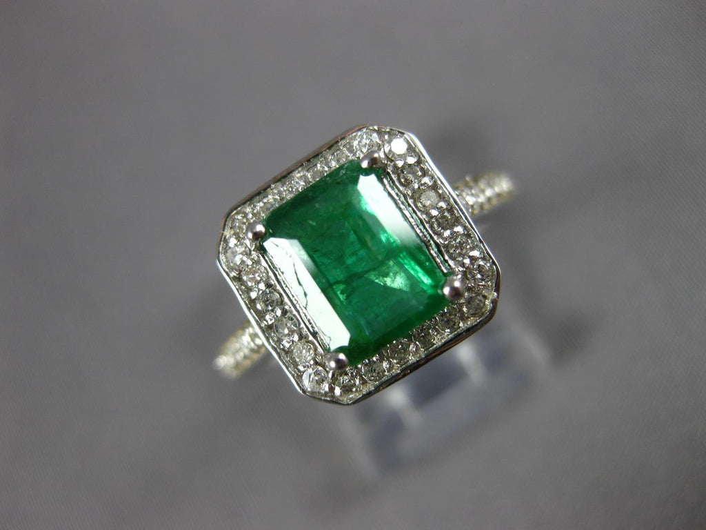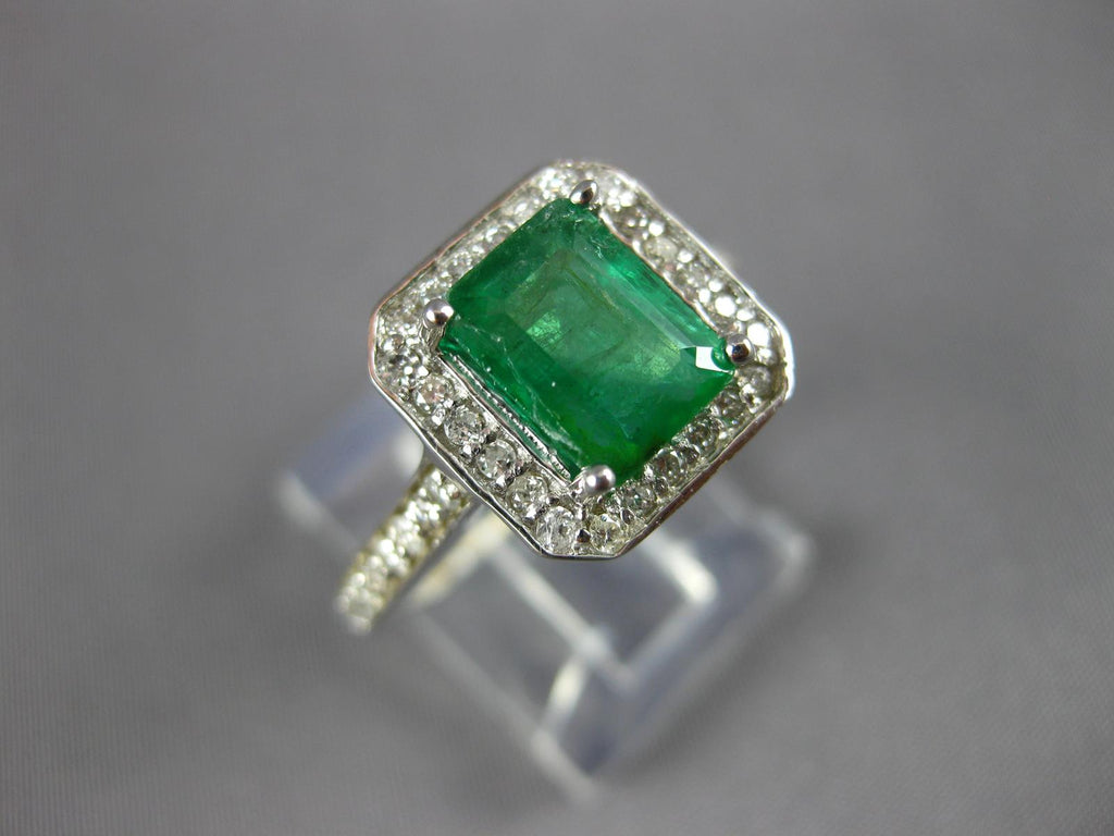2.48CT DIAMOND & AAA EMERALD 14KT WHITE GOLD 3D EMERALD CUT HALO ENGAGEMENT RING