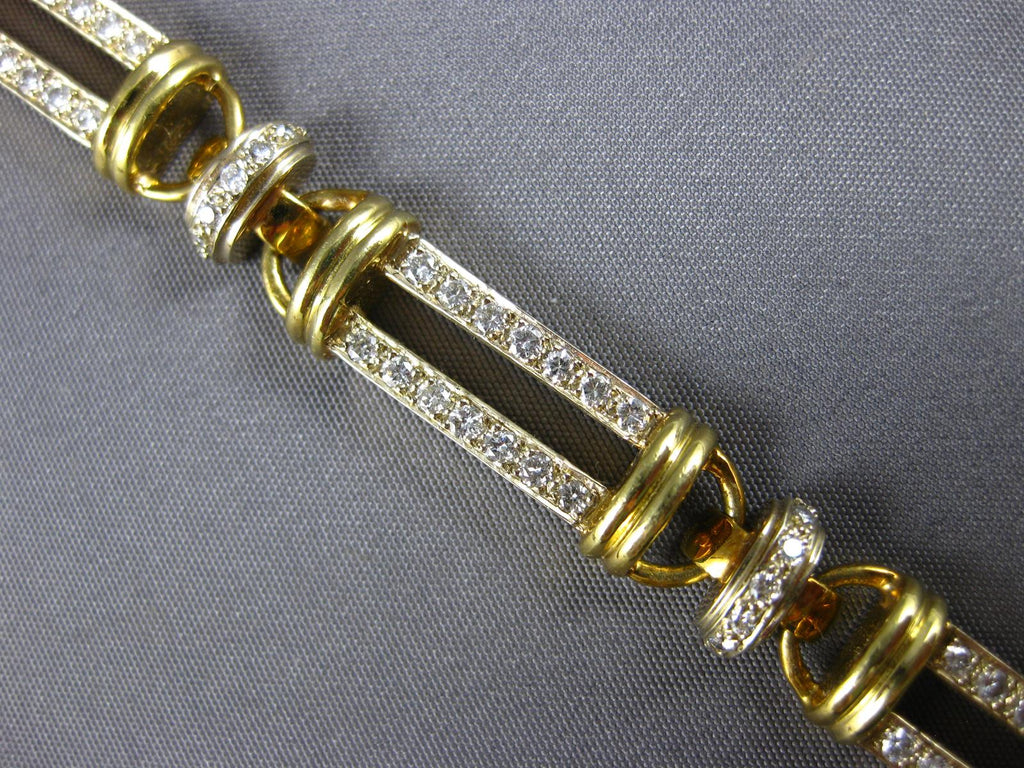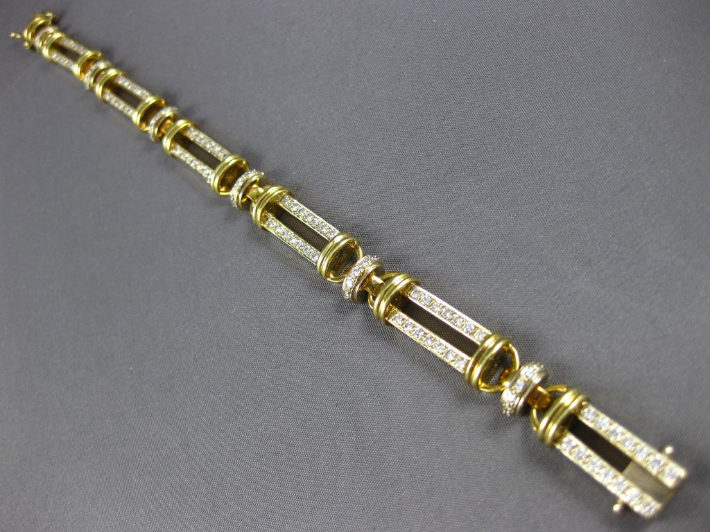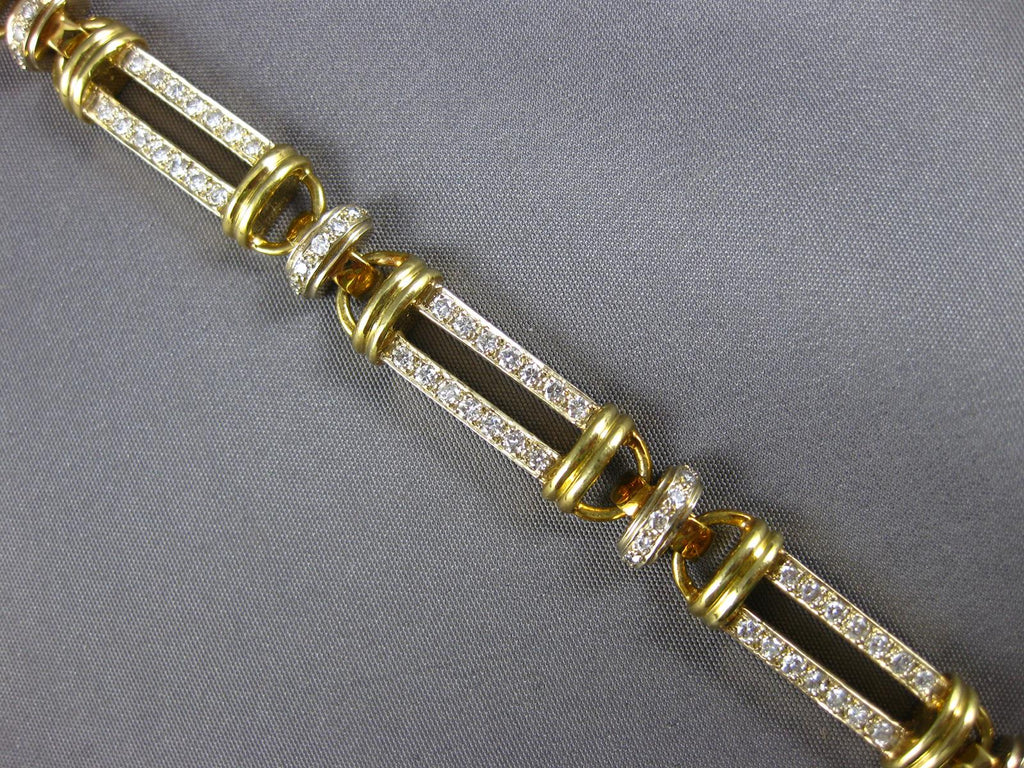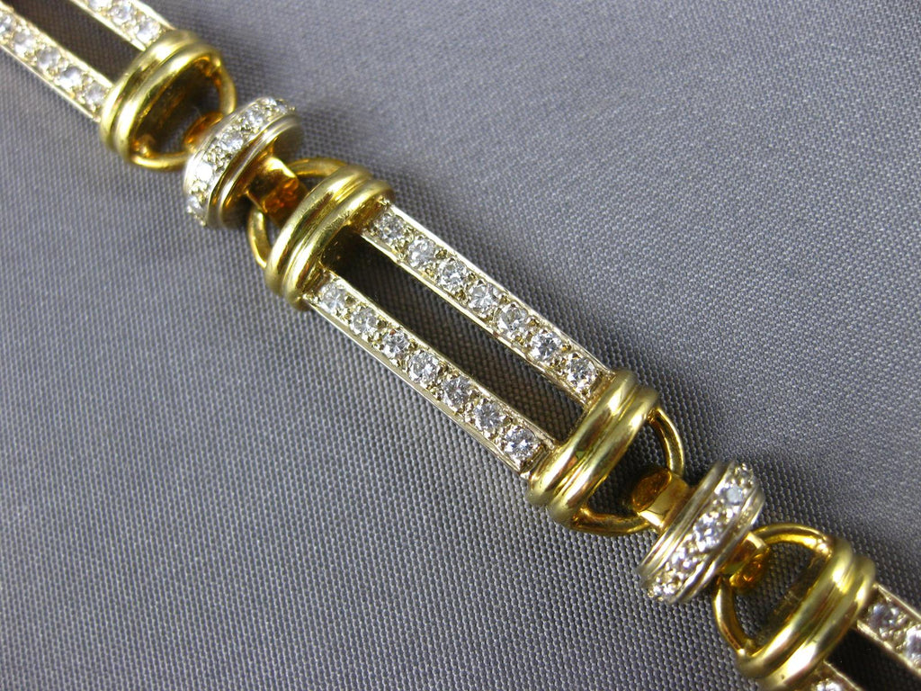 18KT WHITE AND YELLOW GOLD TENNIS BRACELET. 3D DOUBLE BAR LOVE KNOT SOLID DESIGN. DIAMONDS ARE F/G COLOR, VSSI CLARITY 2.50 CARATS. MEASURES 8.5mm WIDE. 7.25" INCHES LONG. WRITTEN APPRAISAL AVAILABLE. COMES IN A PRESENTABLE GIFT BOX.