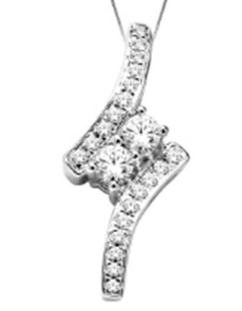 .25CT DIAMOND 14KT WHITE GOLD TWO STONE CRISS CROSS LOVE KNOT FLOATING PENDANT