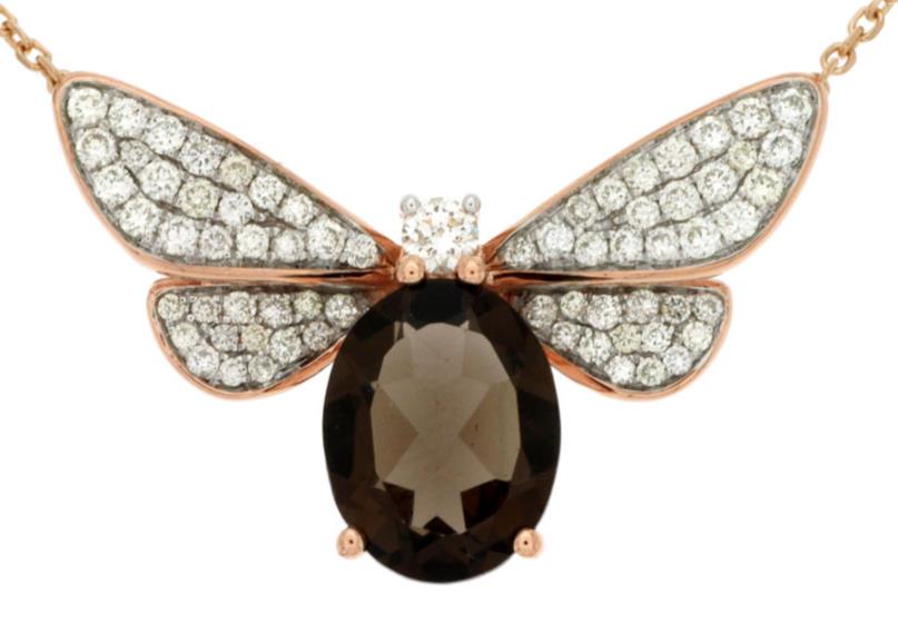 2.63CT DIAMOND & AAA SMOKEY TOPAZ 14KT ROSE GOLD OVAL & ROUND BUTTERFLY NECKLACE