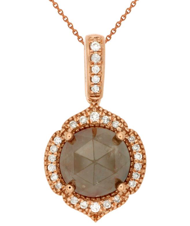 2.66CT WHITE & GREEN DIAMOND 14KT ROSE GOLD FILIGREE CIRCULAR FLOATING PENDANT