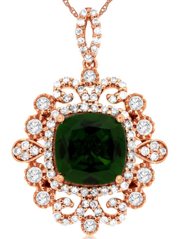 2.72CT DIAMOND & AAA GREEN GARNET 14KT ROSE GOLD CUSHION & ROUND FLOWER PENDANT