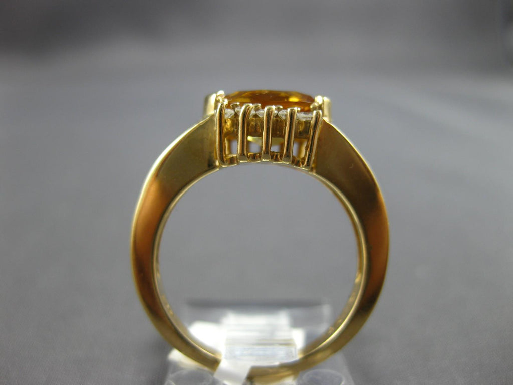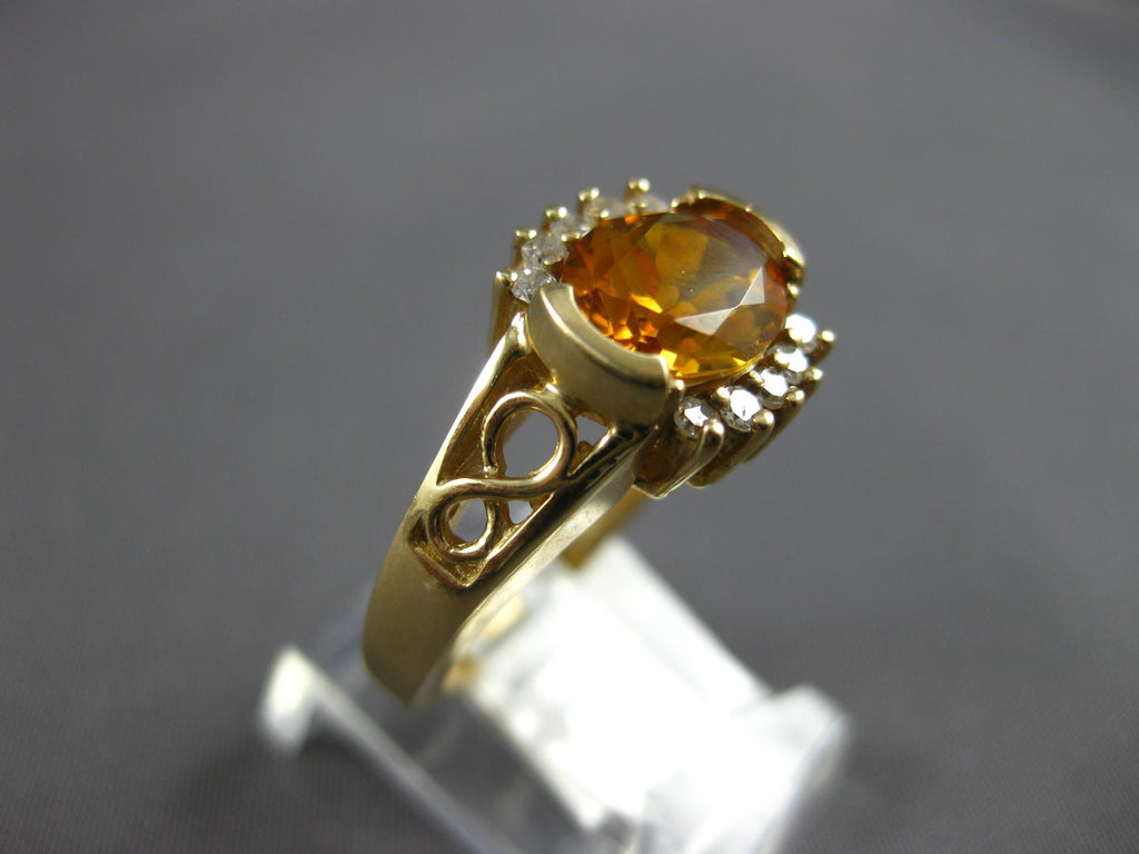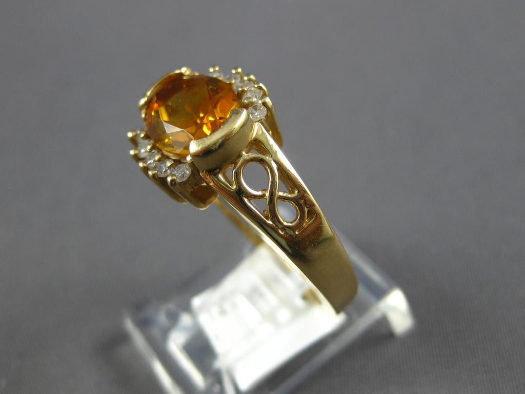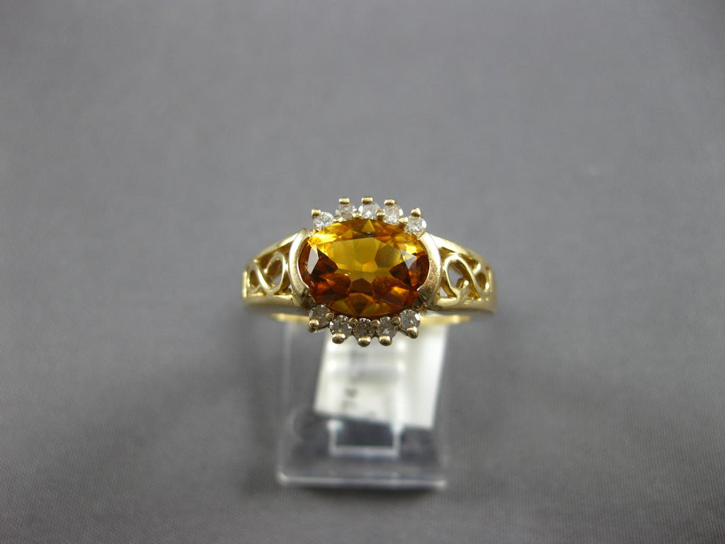 14KT YELLOW GOLD FUN RING. 3D SEMI BEZEL FILIGREE DESIGN. ROUND DIAMONDS ARE F/G COLOR, VSSI CLARITY .14 CARATS. AAA OVAL CITRINE IS 2.60 CARATS. MEASURES 10.5mm WIDE. RING SIZE 6.5. CAN BE SIZED BY OUR MASTER JEWELER UPON REQUEST. WRITTEN APPRAISAL AVAILABLE. COMES IN A PRESENTABLE GIFT BOX.