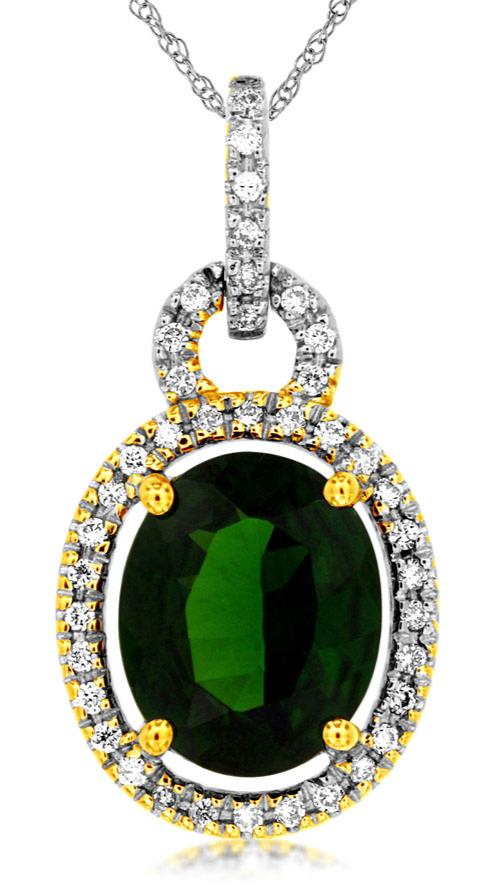 2.76CT DIAMOND & AAA GREEN GARNET 14K YELLOW GOLD OVAL & ROUND LOVE KNOT PENDANT