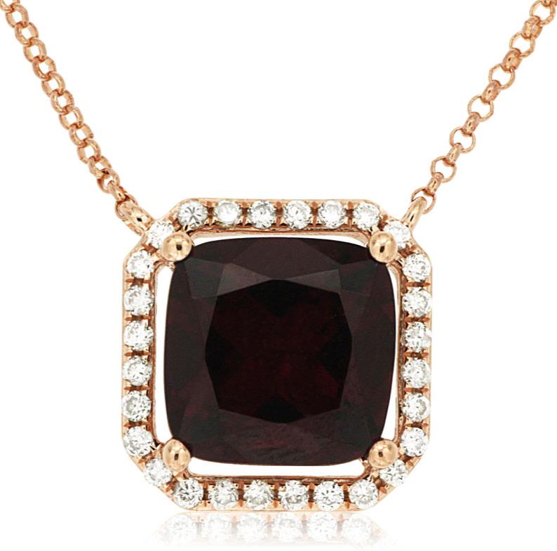 2.79CT DIAMOND & AAA RHODOLITE 14K ROSE GOLD 3D CUSHION & ROUND OCTAGON NECKLACE