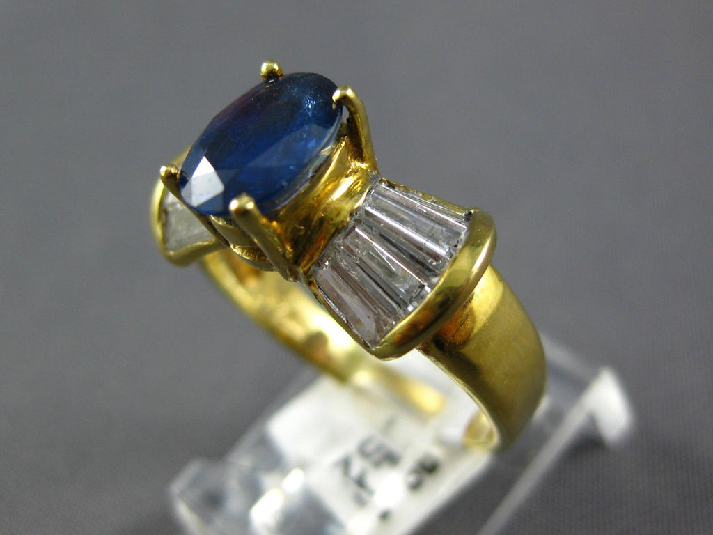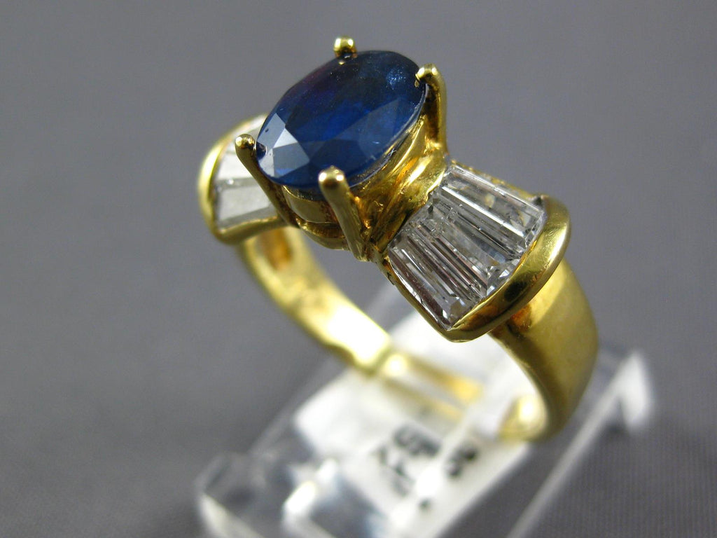 14KT YELLOW GOLD ENGAGEMENT RING. 3D CLASSIC BOW DESIGN. BAGUETTE DIAMONDS ARE F/G COLOR, VSSI CLARITY 1.09 CARATS. AAA OVAL SAPPHIRE IS 1.62 CARATS. MEASURES 8mm WIDE. RING SIZE 6.5. CAN BE SIZED BY OUR MASTER JEWELER UPON REQUEST. WRITTEN APPRAISAL AVAILABLE. COMES IN A PRESENTABLE GIFT BOX.