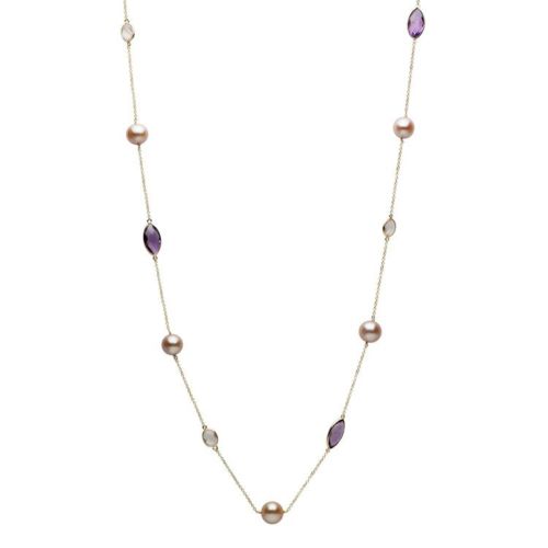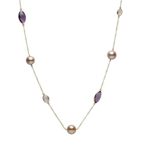 28.94CT ROSE QUARTZ AMETHYST & PINK PEARL 14KT YELLOW GOLD BY THE YARD NECKLACE