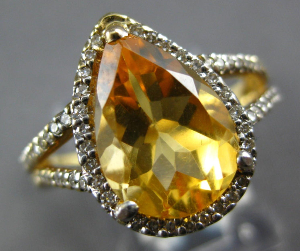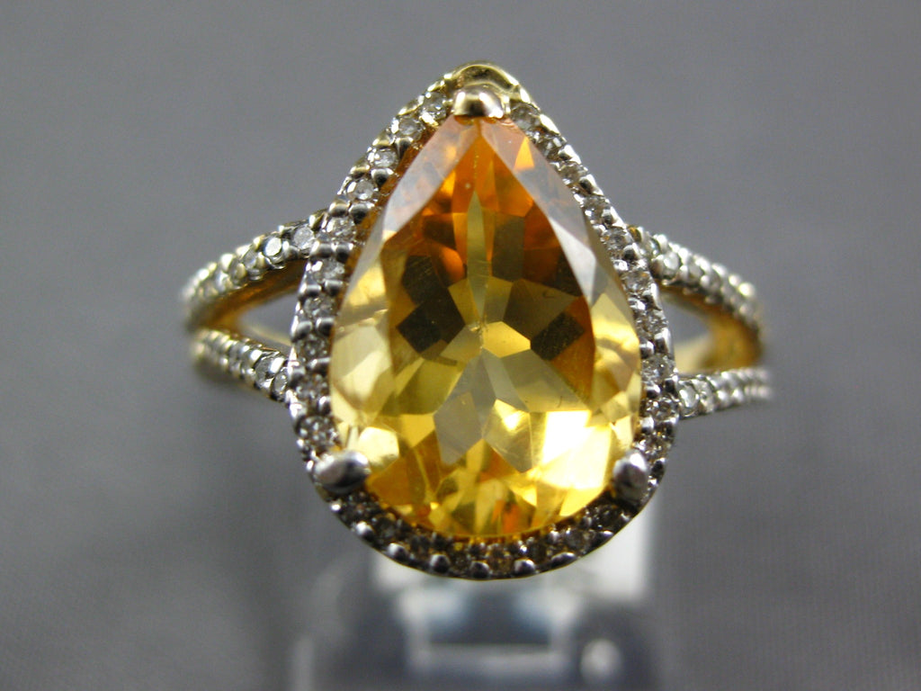 14KT YELLOW GOLD FUN RING. 3D HALO DESIGN. ROUND DIAMONDS ARE F/G COLOR, VSSI CLARITY .21 CARATS. AAA PEAR SHAPE CITRINE IS 2.70 CARATS. MEASURES 14.5mm WIDE. RING SIZE 6.75. CAN BE SIZED BY OUR MASTER JEWELER UPON REQUEST. WRITTEN APPRAISAL AVAILABLE. COMES IN A PRESENTABLE GIFT BOX.