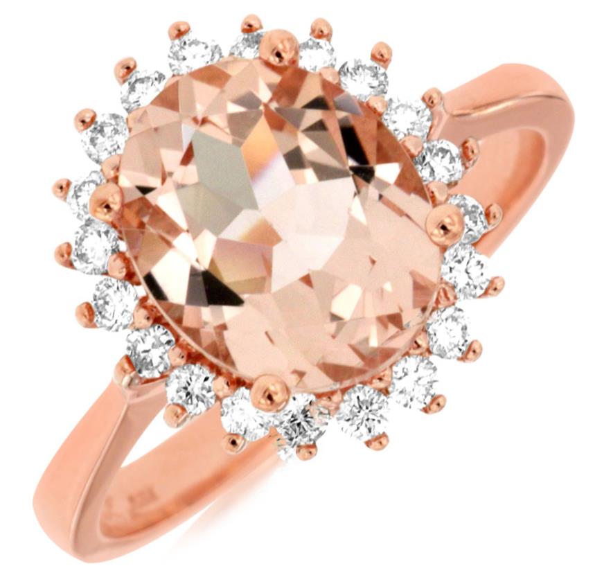 14KT ROSE GOLD LOVE RING. 3D CLASSIC FLOWER DESIGN. ROUND DIAMONDS ARE F/G COLOR, VSSI CLARITY .36 CARATS. AAA EXTRA FACETED OVAL MORGANITE IS 2.60 CARATS. RING SIZE 7. CAN BE SIZED BY OUR MASTER JEWELER UPON REQUEST. WRITTEN APPRAISAL AVAILABLE. COMES IN A PRESENTABLE GIFT BOX.