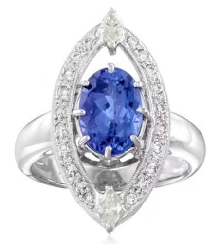 3.03CT DIAMOND & AAA TANZANITE 18KT WHITE GOLD OVAL ROUND & MARQUISE SHAPE RING