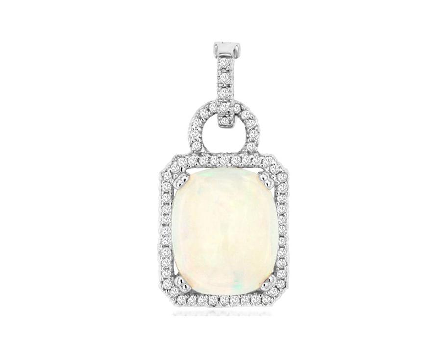 3.04CT DIAMOND & AAA OPAL 14KT WHITE GOLD OVAL & ROUND OCTAGON FLOATING PENDANT