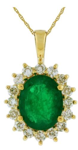 14KT YELLOW GOLD FLOATING PENDANT. 3D CLASSIC FLOWER DESIGN. ROUND DIAMONDS ARE F/G COLOR, VSSI CLARITY 1.0 CARAT. AAA OVAL EMERALD IS 2.40 CARATS. COMES ON A 14KT GOLD DIAMOND CUT 16" INCH CHAIN. WRITTEN APPRAISAL AVAILABLE. COMES IN A PRESENTABLE GIFT BOX.