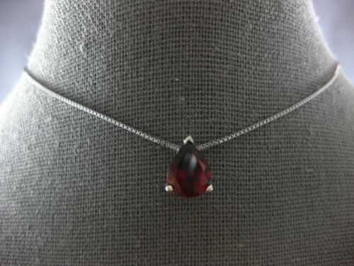 14KT WHITE GOLD FLOATING PENDANT. 3D CLASSIC SOLITAIRE FILIGREE DESIGN. AAA EXTRA FACETED PEAR SHAPE GARNET IS 3.0 CARATS. MEASURES 11.5mm X 8.5mm. COMES ON A 14KT GOLD DIAMOND CUT 16" INCH CHAIN. WRITTEN APPRAISAL AVAILABLE. COMES IN A PRESENTABLE GIFT BOX.