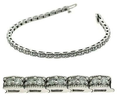 3.0CT DIAMOND 14KT WHITE GOLD 2 STONE PAVE FILIGREE MILGRAIN FUN TENNIS BRACELET
