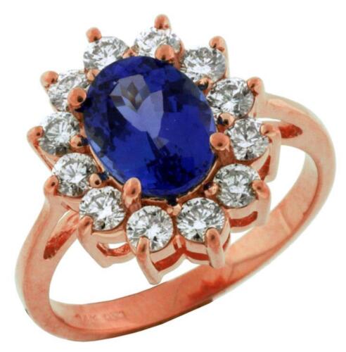 14KT ROSE GOLD ENGAGEMENT RING. 3D PRINCESS DIANA FLOWER DESIGN. ROUND DIAMONDS ARE F/G COLOR, VSSI CLARITY 1.0 CARAT. AAA EXTRA FACETED OVAL TANZANITE IS 2.0 CARATS. RING SIZE 7. CAN BE SIZED BY OUR MASTER JEWELER UPON REQUEST. WRITTEN APPRAISAL AVAILABLE. COMES IN A PRESENTABLE GIFT BOX.