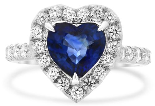 3.11CT DIAMOND & AAA SAPPHIRE 18KT WHITE GOLD HEART SHAPE ENGAGEMENT RING