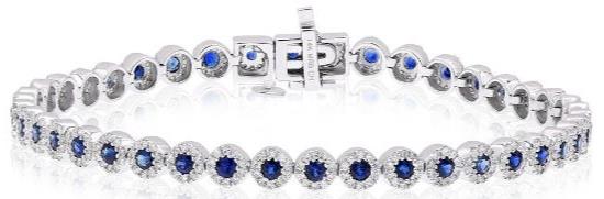 3.21CT DIAMOND & AAA SAPPHIRE 14KT WHITE GOLD ROUND HALO FLOWER TENNIS BRACELET