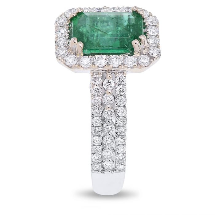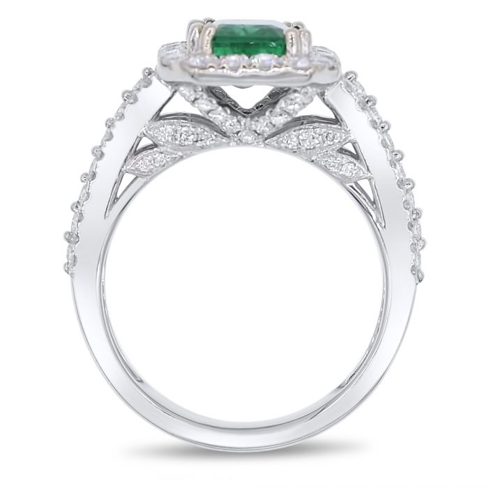 3.22CT DIAMOND & AAA EMERALD 14KT WHITE GOLD 3D SQUARE & ROUND ENGAGEMENT RING