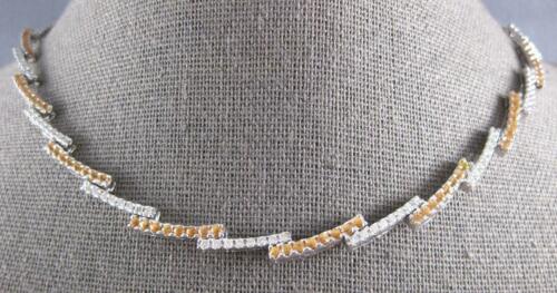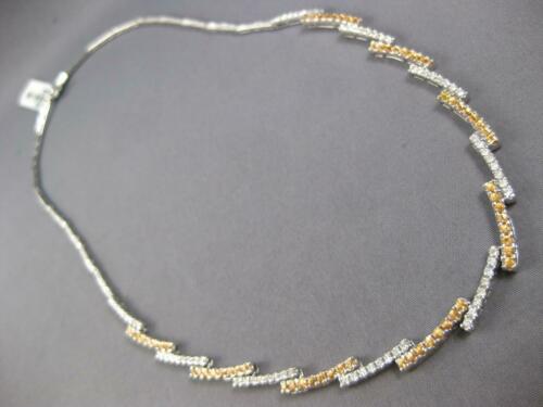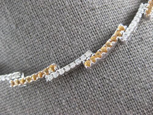 14KT WHITE GOLD LOVE NECKLACE. 3D MULTI ROW CRISS CROSS DESIGN. DIAMONDS ARE F/G COLOR, VSSI CLARITY 1.05 CARATS. AAA YELLOW SAPPHIRES ARE 2.19 CARATS. MEASURES 4.5mm WIDE. 17" INCHES LONG. WRITTEN APPRAISAL AVAILABLE. COMES IN A PRESENTABLE GIFT BOX.