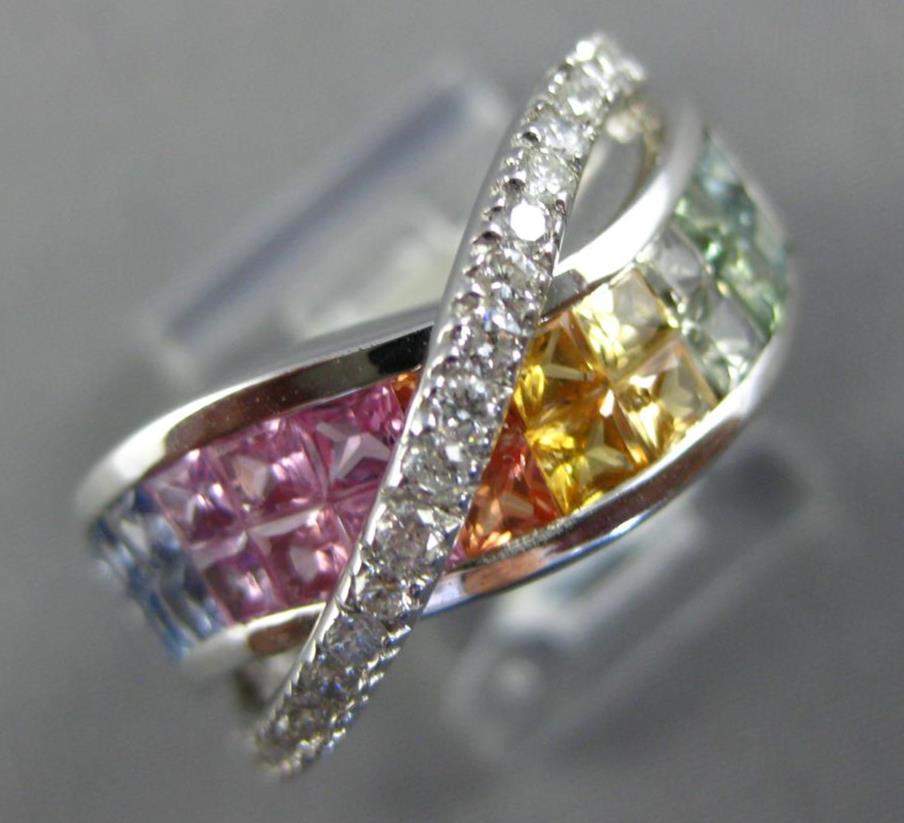 3.02CT DIAMOND & AAA RAINBOW SAPPHIRE 14KT WHITE GOLD CRISS CROSS INFINITY RING