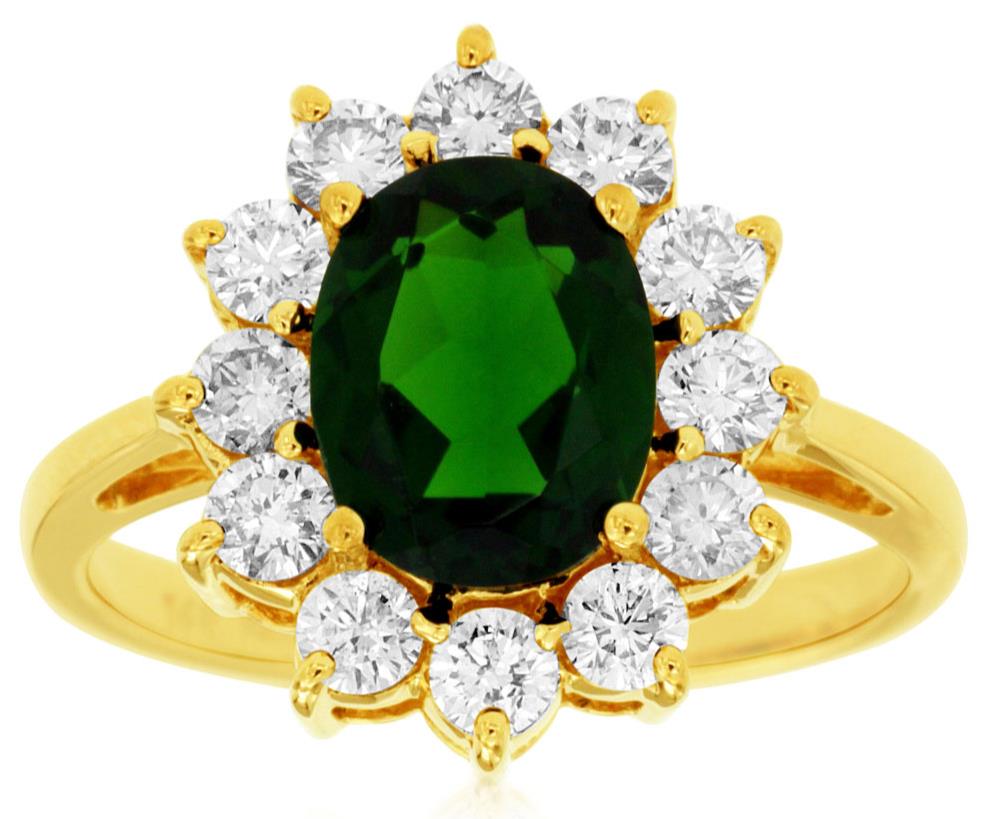 3.05CT DIAMOND & AAA GREEN GARNET 14KT YELLOW GOLD OVAL & ROUND FLOWER LOVE RING
