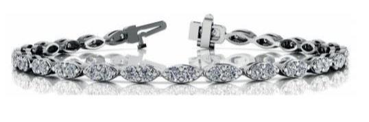 14KT WHITE GOLD TENNIS BRACELET. 3D MARQUISE SHAPE ETERNITY DESIGN. ROUND DIAMONDS ARE F/G COLOR, VSSI CLARITY 3.24 CARATS. 7" INCHES LONG. WRITTEN APPRAISAL AVAILABLE. COMES IN A PRESENTABLE GIFT BOX.